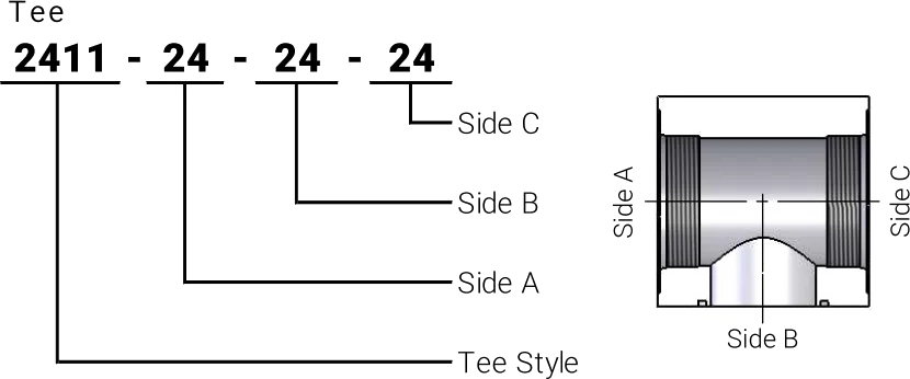 - 2411Represents a tee that is ORB on the run with Code 61 O'Ring Face on the branch
